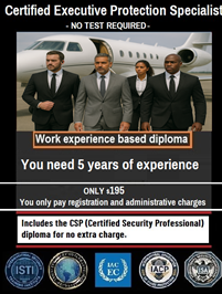 Work experience based diploma. Executive protection is a risky business - for you and your principal or those in need of protection. Corporate executives, celebrities, government leaders, and other prominent individuals are frequently in risk-prone situations that demand a high degree of personal protection. Today's protection specialist must be equipped to deal with anything at any time.